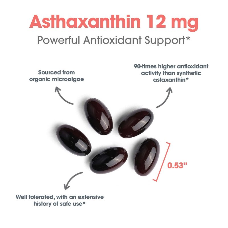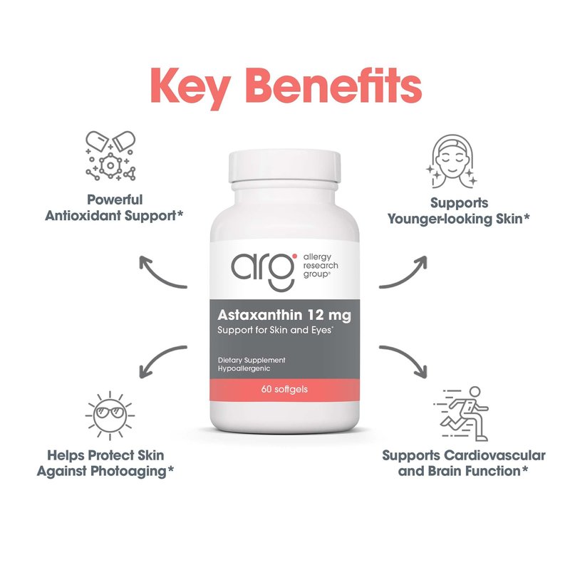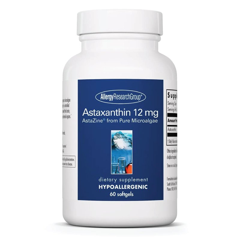 Allergy Research Group Astaxanthin 12mg Supplement - from Organic Microalgae, Eye Health, AstaZine Astaxanthin, Natural Antioxidant, Skin Health, Brain Function Support, Softgels - 60 Count