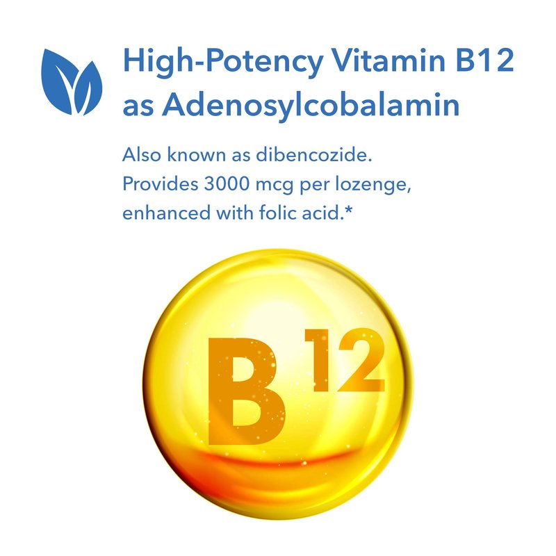 Coenzyme vitamin B12 in the form of adenosylcobalamin, also known as dibencozide. This is the active form of vitamin B12 used by the mitochondria, the energy powerhouse in each cell.* With folic acid.Folic Acid,Vitamin B12 (as Adenosylcobalamin),Sorbitol,stearic acid,cellulose,silica,magnesium stearate.