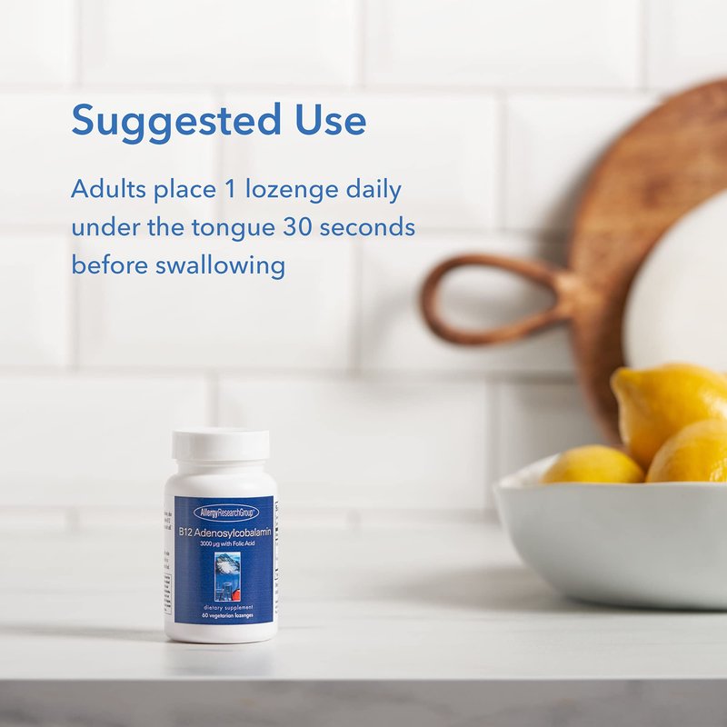 Allergy Research Group B12 Adenosylcobalamin Supplement - with Folic Acid, Vitamin B12 3000 mcg, Folate, Pure B12, Vegetarian Lozenges - 60 Count