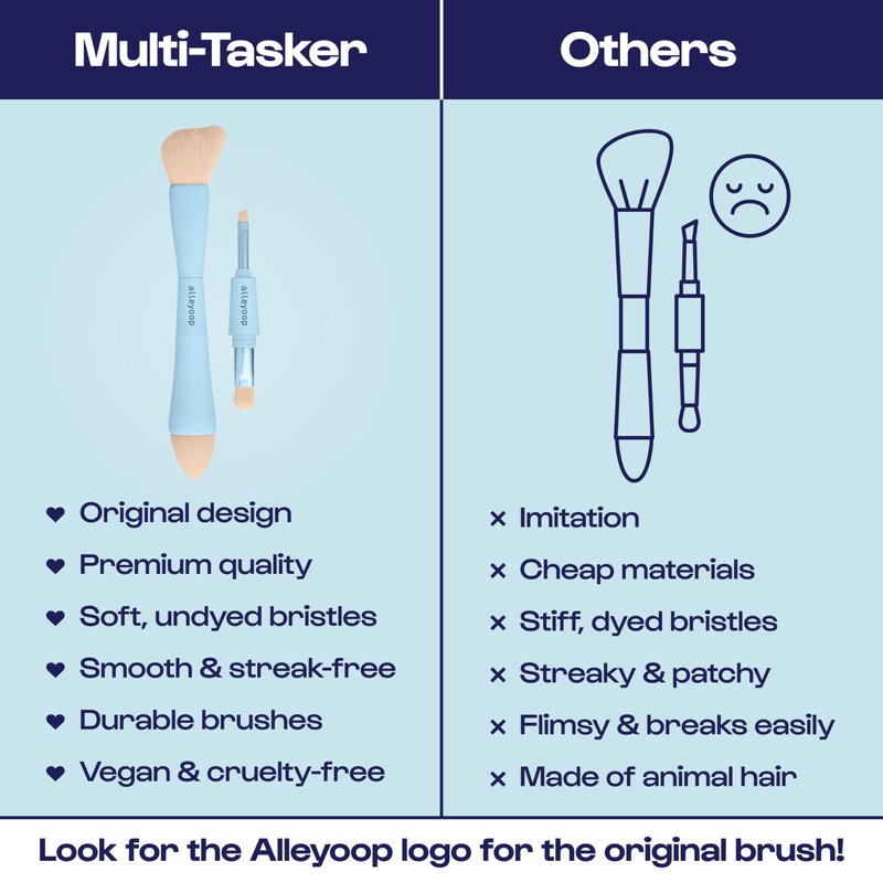 Alleyoop Multi-Tasker 4-in-1 Makeup Brush – All-in-One Sponge, Eyeshadow, Eyebrow, Liner & Blush Blending for Foundation, Concealer, Powder Buildable Coverage Vegan, Dual-Ended Travel-Friendly