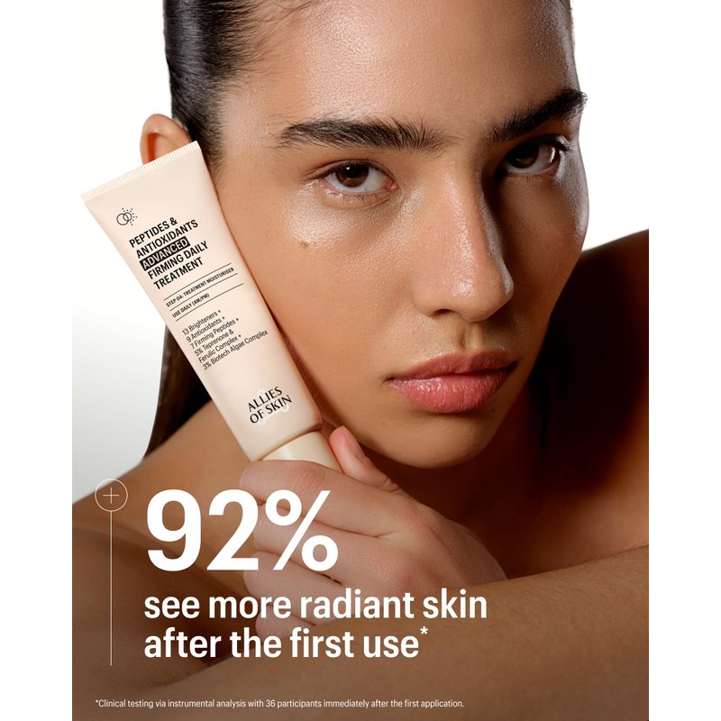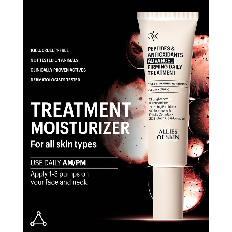 Allies of Skin Peptides & Antioxidants Advanced Firming Daily Treatment with 13 Brighteners, 9 Antioxidants, 7 Firming Peptides, 5% Teprenone & Ferulic Complex and 3% Biotech Algae Complex 48ml/1.6oz
