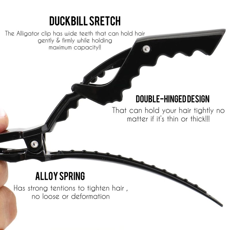 - Made For Hairstylists- These Alligator clips are perfect for straightening, coloring, blow-drying, cutting, and styling every mens and woman's hair. These clips teeth size can adjust to hold any kind of hair regardless of amount, thickness, or any hair type. They’re also perfect for Holding Foils in place during applications of hair coloring, bleaching, and treatments. While you're getting your hair done!!!