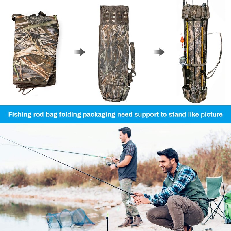 Allnice Fishing Tackle Bag Oxford Fishing Rod Case Portable High-Capacity Fishing Pole Carry Organizer Outdoor Waterproof Fishing Tools Storage Bag for Fisherman(Camo)