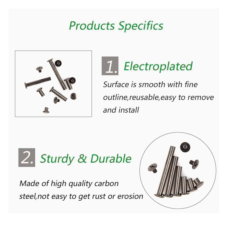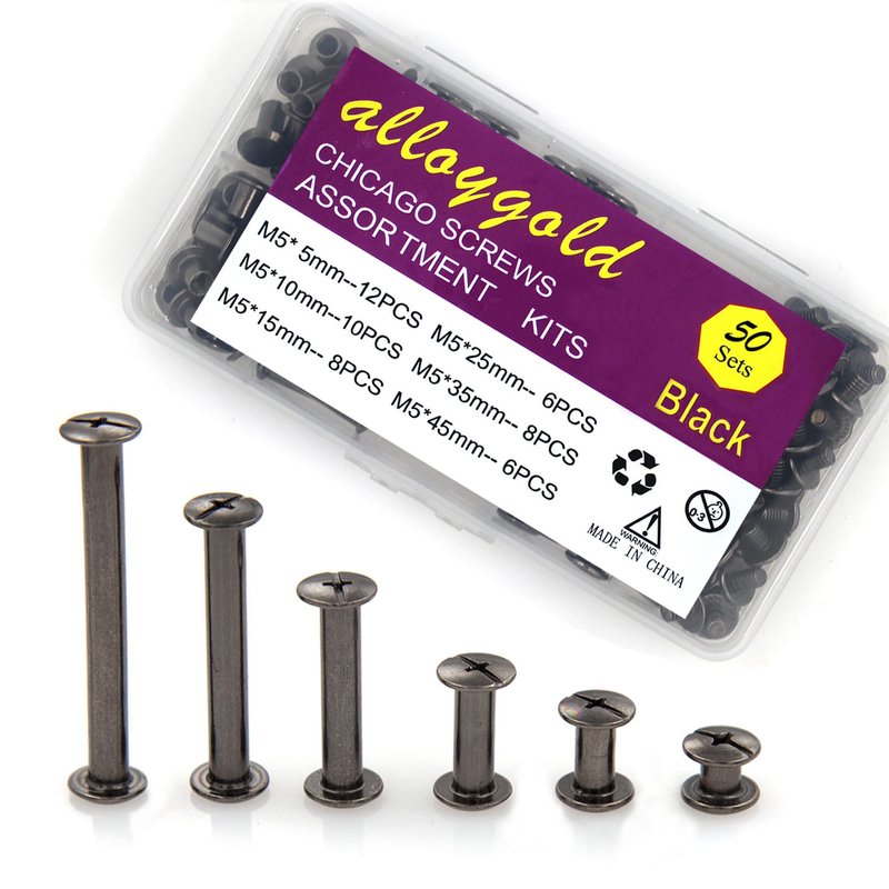 - 1. Convenient Repair Kit: The ALLOYGOLD 100 Pcs (50 Pair) Gun Black Phillips Chicago Binding Screws Assorted Kits is a must-have for repairing leather saddles, purses, and belts.
