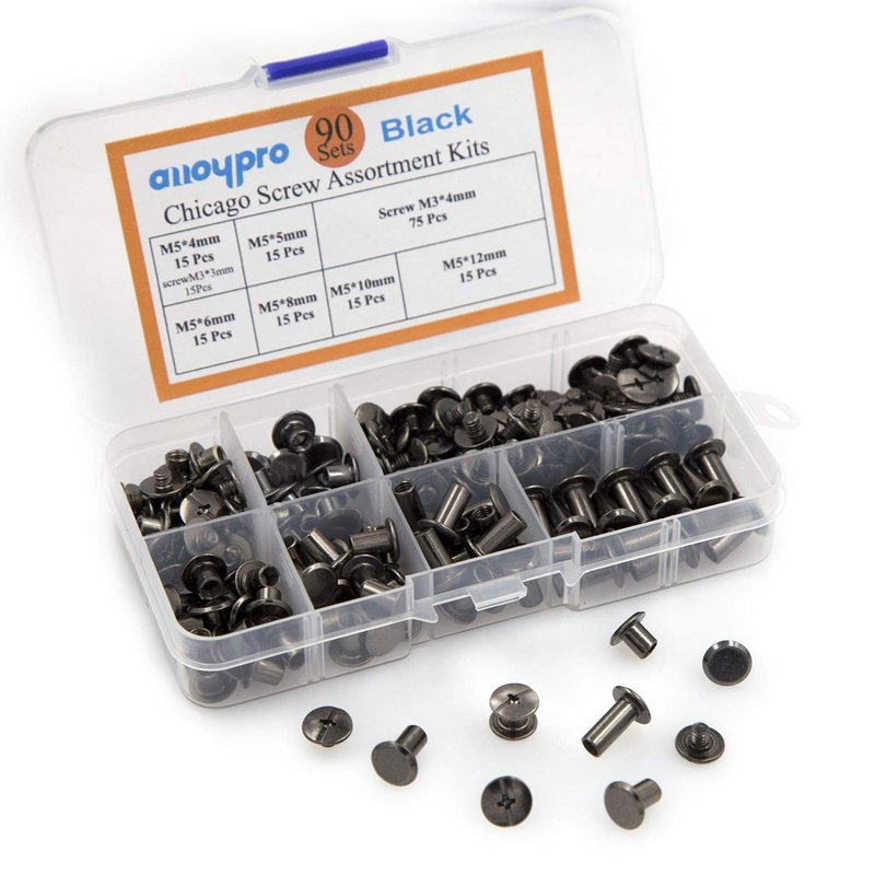 Alloypro 90 Sets Chicago Screws Assorted Kit 6 Sizes Gun Metal Leather Rivets 3/16(5mm) Screw Rivets Phillip Head Book Binding Posts Nail Rivet Chicago Bolts for DIY Leather Craft (5 x 4,5,6,8,10,12)