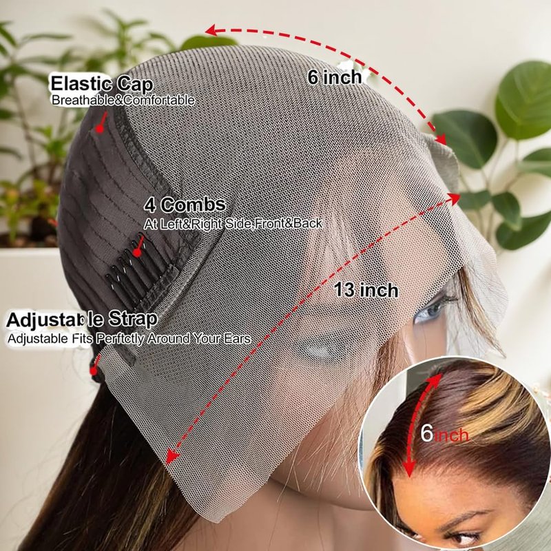 - 【👯 Straight Highlight Lace Front Wigs Human Hair Cap Size 】13x6 straight highlight lace front wig human hair body wave average size cap (22.5 circumferences inch), with 4 combs and adjustable straps, it can match most people perfectly and easier to install and wear, you will feel like your own hair. 13x6 HD lace frontal wigs human hair suit diferent skin tone.