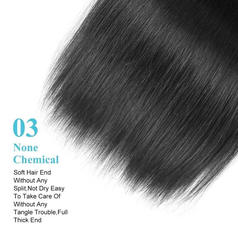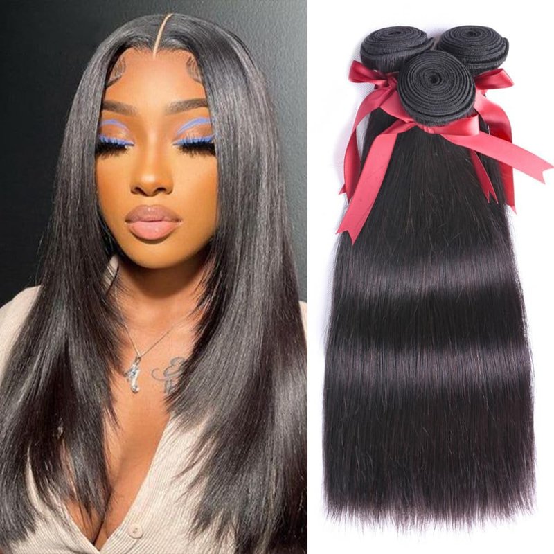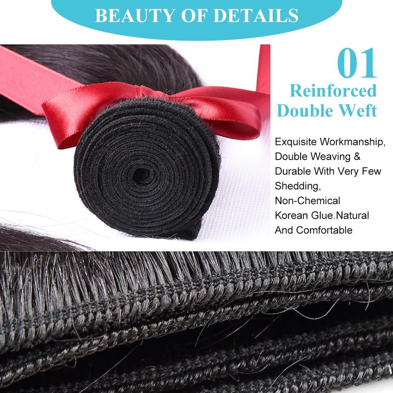 - 💖Human Hair Bundles Straight Advantage:High Quality Straight Bundles,Double Machine Weft, Full Density, Thick Ends, Soft Weave, Bouncy and Shiny Hair Weft with High Elasticity; Tight & Neat, One Direction Cuticle with No Split Ends, No Shedding, No Tangles, No Smells , No Bugs or Lices.