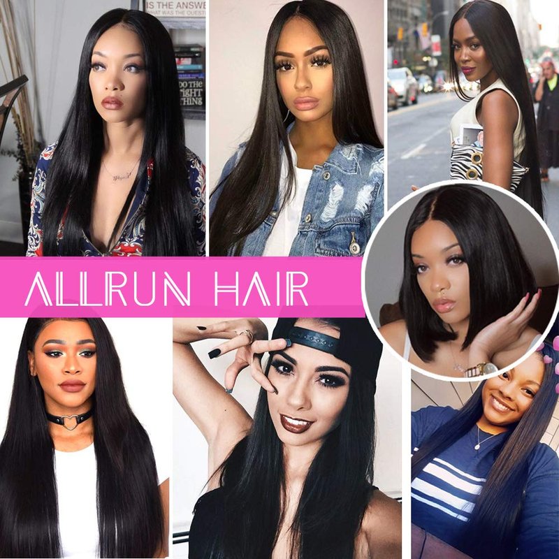 ALLRUN Straight Bundles Human Hair 14 16 18 18Inch Straight 4 Bundles 100% Unprocessed Brazilian Virgin Raw Hair Weave Straight Human Hair Bundles Human Hair Extensions Natural Black