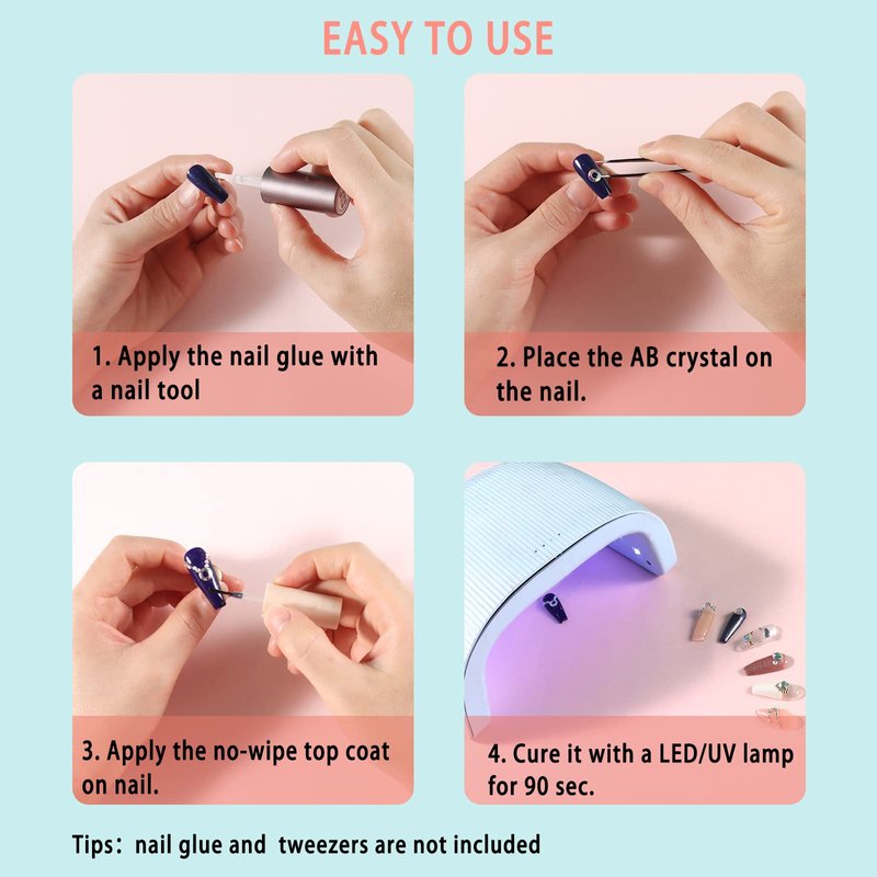 Why Choose Allstarry? ♥ Offer you quality products with a range of accessories at a reasonable price. ♥ Our priority is to make customers satisfied whether with our products or our service. ♥ We have chosen reliable Amazon logistics, if you do not receive any products or the package is damaged, please contact the Amazon customer service team first and then contact us. We will assist you until the problem is solved! (We will reply to you within 24 hours, except on statutory holidays.). Specifications: Color: iridescent Quantity: 100* rhinestones Material: ABS How to Use? 1. Apply the base coat to the nails and cure it with a lamp for 30sec. 2. Apply the nail polish and cure it for 30sec. 3. Apply the glue. 4. Hold the AB rhinestone and place it on the glue with the tweezers. 5. Apply the clear top coat for the whole nail with rhinestones. 6. Cure it for 90 seconds. Something should know: 1.The AB diamonds for nails are glue-fix, not hot-fix. The glue and the tweezers are not included in the package. 2.Keep them away from children too young.