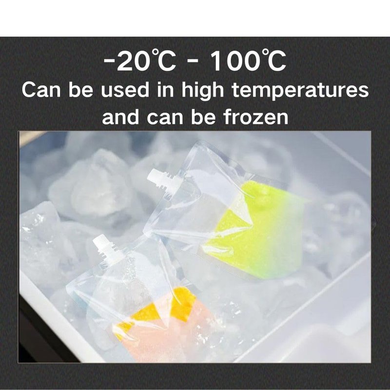 Translucent frosted design drink bag, leak-proof, sturdy and lightweight, allowing you to easily carry it anywhere. The edges are specially treated and not sharp. Suitable for travel, vacations, sporting events, concerts and any other indoor and outdoor sports, when the lid is tightened, it can withstand 50KG pressure, -20℃-100℃ heat and cold resistance, can be filled with hot or frozen drinks, uses high-quality food Made of grade plastic, odor-resistant, 100% BPA-free and toxin-free, ensuring healthy drinking. The drink bags are durable and reusable and can be used multiple times.