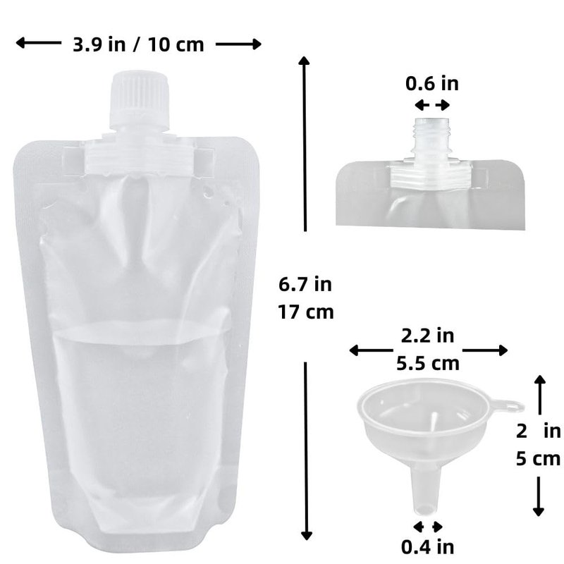 Alltoyable Portable drink bag, translucent frosted design, reusable, leak-proof, food-grade material does not contain BPA, suitable for outdoor,concerts, cruises (8OZ*15Pcs+16OZ*15Pcs+3 funnels)