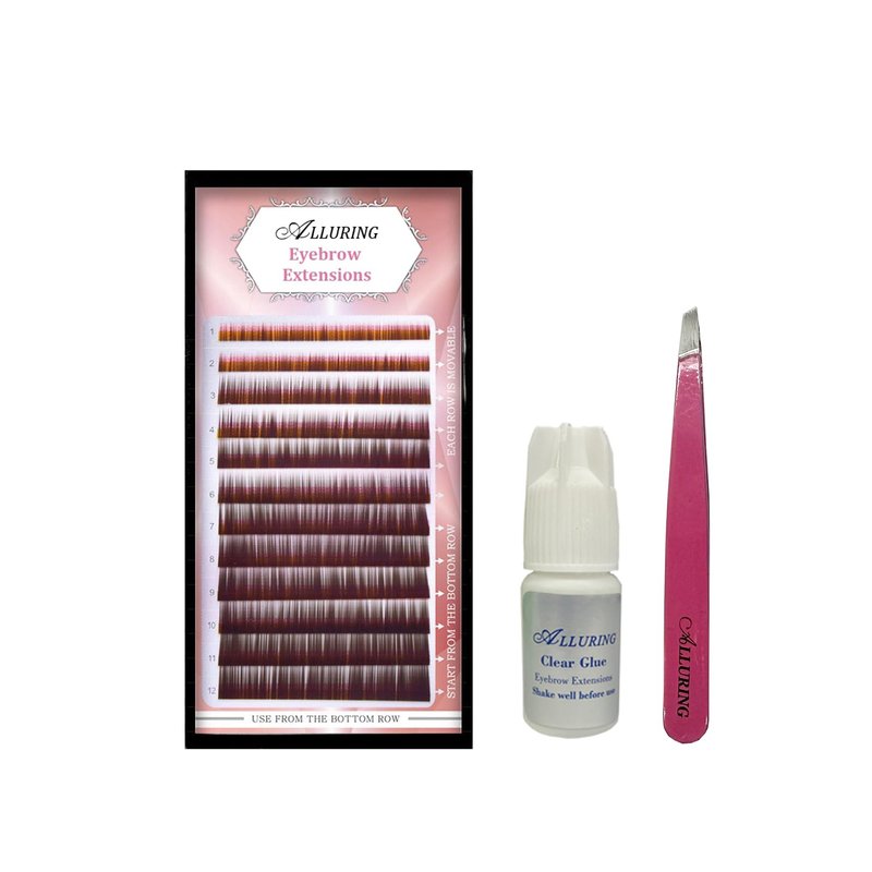 Alluring Dark Brown Brow Eyebrow Extensions, Clear Glue & Tweezers Kit