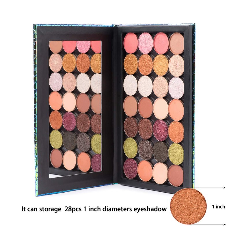 - Green Mermaid Magnetic Makeup Palette:Length Outside: 8.07 Inches,Width Outside: 5.11 Inches, Depth Outside: .47 Inches ; Length Inside: 7.32 Inches ,Width Inside: 4.25 Inches, Depth Inside: .25 Inches,which can storage 28pcs 1 inch diameters eyeshadow.