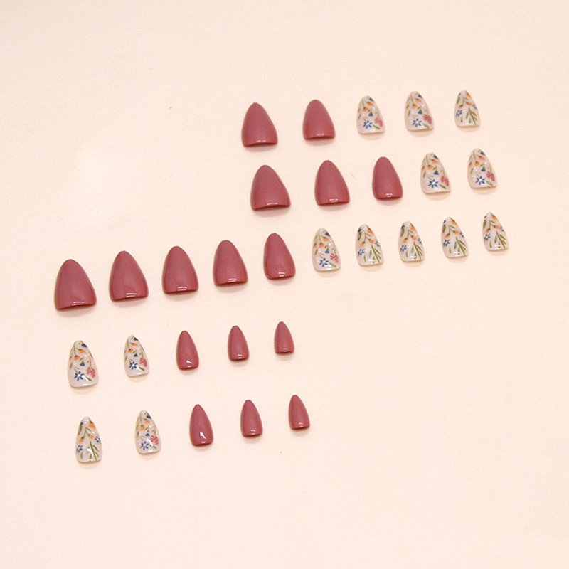 Almond Press on Nails Short Fake Nails Flower Glue on Nails Red Bean Paste Full Cover False Nails Press ons Glossy Acrylic Nails Artificial Stick on Nails for Women 24Pcs
