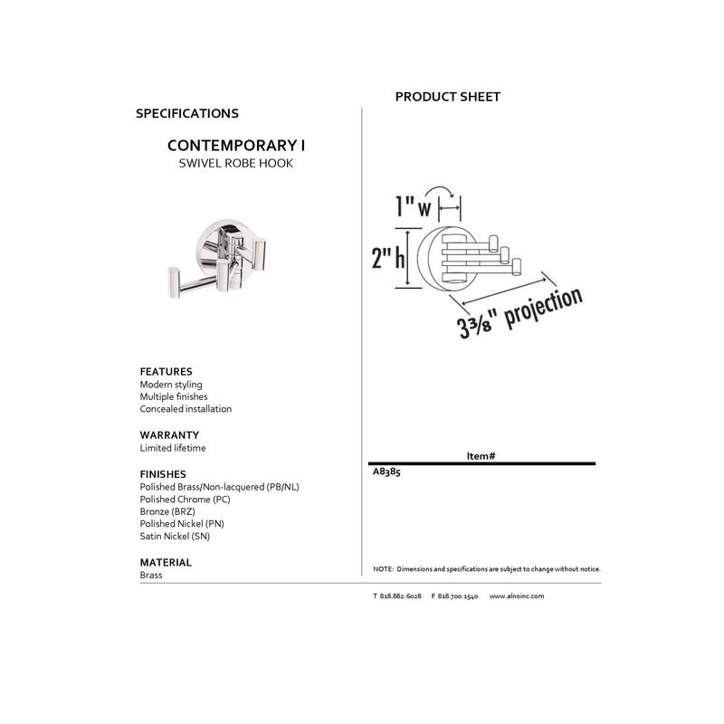 Alno A8385-PN Contemporary I Modern Robe Hooks, Polished Nickel