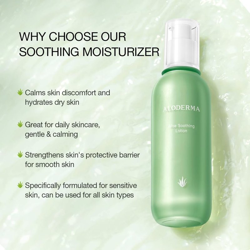 - Clean Natural Ingredients: Let our aloe vera lotion empower your skin with its potent formula, enhancing your natural beauty from within. Aloderma special formula with Aloe Vera, Squalane, Shea Butter makes our face lotion a great choice for your skin’s needs. It calms skin discomfort and nourishes dry skin, without stripping the skin of its natural oils.