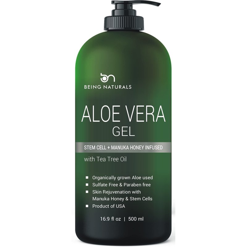 - Daily treatment for face, skin, body and hair - Our Pure Organic Aloe Vera Gel made from 100 percent Aloe Plant infused with tea tree oil, apple stem cells and Manuka honey and is an essential for men and women . Our Skin care is made in the USA. Sulfate free, Alcohol Free and Paraben Free