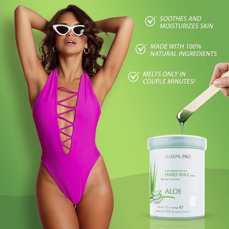 Aloe Vera Hard Wax Beads for Hair Removal - All-Natural Painless Wax for Face, Bikini, Armpit, Legs, Arms, Chest, Upper Lip - Easy to Use, Fast-Melting Body Wax - 17 oz