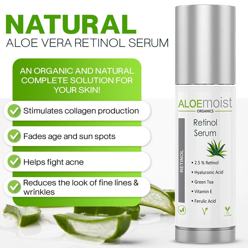 Aloemoist 2.5% Retinol Serum for Face + Hyaluronic Acid, Aloe Vera, Vitamin E Oil, Jojoba Oil, Vitamin C Serum – Face Toner, Pore Minimizer, Acne Treatment, Reduces Wrinkles Fine Lines, Age Spots .5oz
