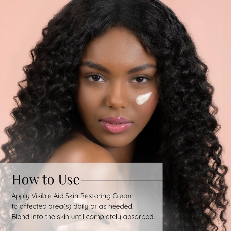 - How to Use: Apply Visible Aid Skin Restoring Cream to affected area(s) daily or as needed. Blend into the skin until completely absorbed.