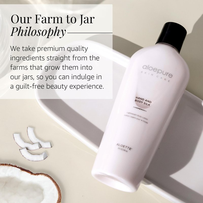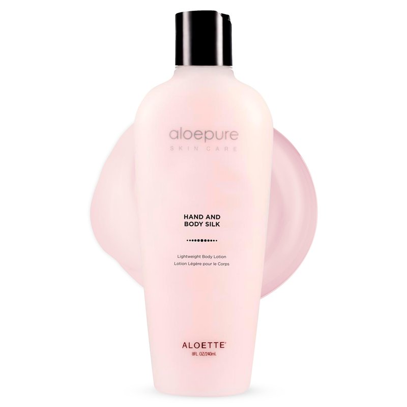 - Pamper Your Skin: Aloette Hand and Body Silk is a lightweight, non-greasy moisturizer that will keep your skin soft and leave behind a gentle floral scent. 8 fl oz/236 ml