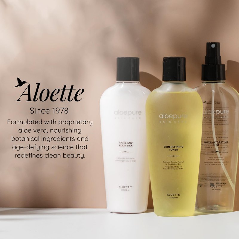 - Aloette: Since 1978, Aloette Cosmetics has been prioritizing overall skin health by formulating products with our proprietary aloe vera, nourishing botanical ingredients, and age-defying science that redefines clean beauty.
