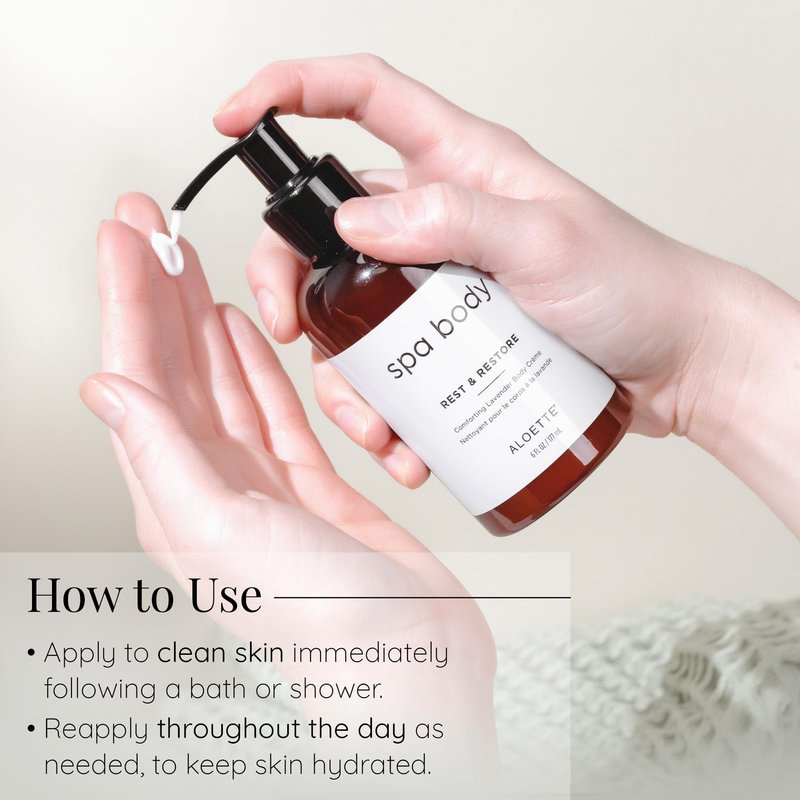 - Deeply Moisturize Your Skin: Aloette Rest & Restore Comforting Lavender Body Crème soothes and rejuvenates the look of dry skin. This niacinamide-infused lotion imparts a radiant-looking glow from head to toe. 6 fl oz/177 ml