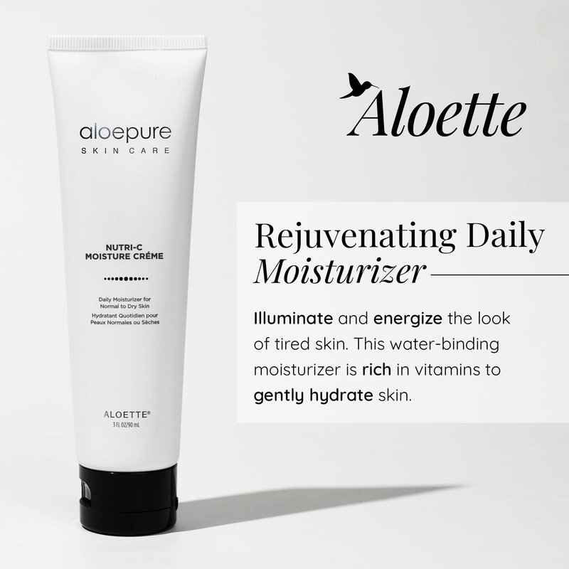 - A Rejuvenating Daily Moisturizer: Illuminate and energize the look of tired skin. Aloette Nutri C Moisture Creme is a water-binding facial moisturizer rich in vitamins that gently hydrates skin all day. 3 fl oz/90 ml