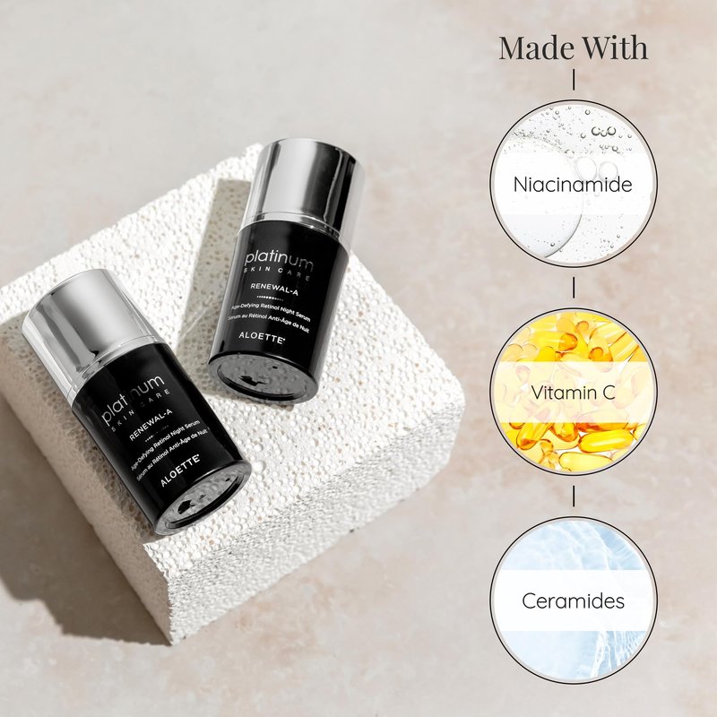 Aloette Retinol Serum for Face - Hydrating Vitamin C Face Serum with Niacinamide Hydrates, Plumps & Brightens Skin - Night Facial Serum Skincare for Fine Lines & Uneven Skin Tone, 0.54 Oz