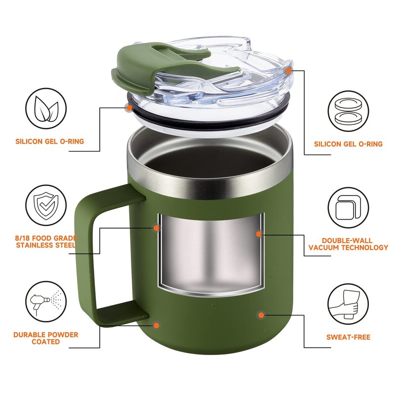 - FOOD-GRADED INSULATED COFFEE MUG:Made of food-grade 304 8/18 stainless steel, liner of coffee mug will not produce any taste and will not rust, and the stainless steel material is durable and not easy to break.