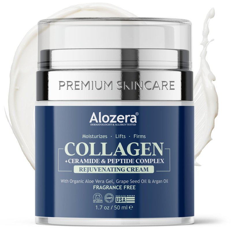 Alozera Collagen Moisturizer Cream – Anti-Aging Collagen for Rejuvenation, Firming, Lifting, and Smoothing Wrinkles, Day & Overnight Face Cream, 1.7 oz