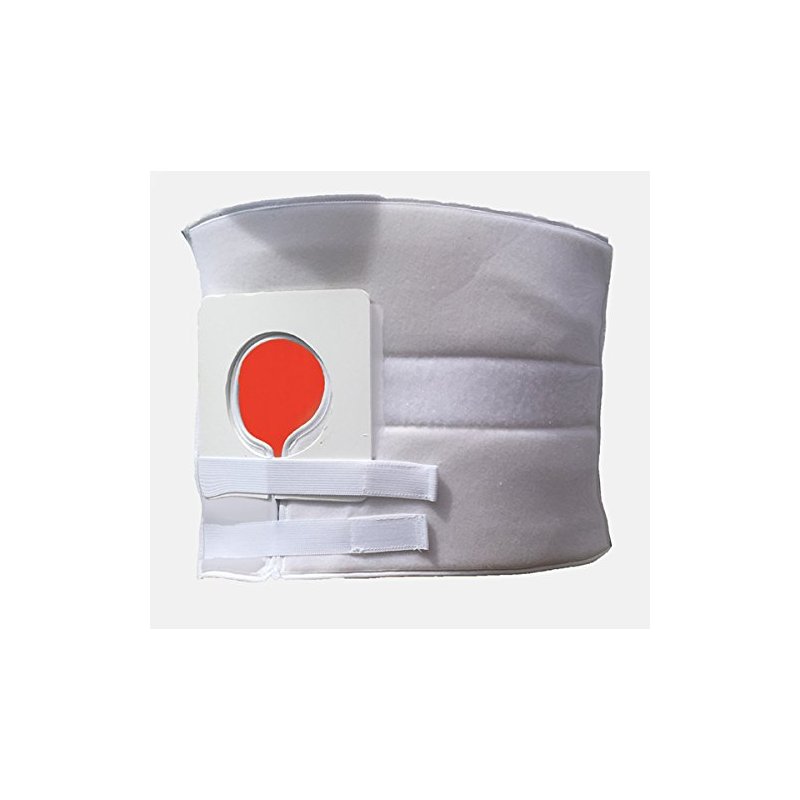 The Alpha Medical Stoma / Ostomy Abdominal Binder with Stoma Opening is made in the USA with first quality materials. The stoma cut out is 2 3/8” in diameter. The binder is designed so that it can be put on and taken off without the need for removing the colostomy bag. There is a removable plastic panel around the stoma to provide protection, support, and to help maintain the shape of the binder at the stoma. The abdominal support is ideal for hernias, soothing abdominal compression, skin irritation, sanitation, and more.