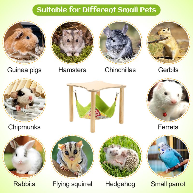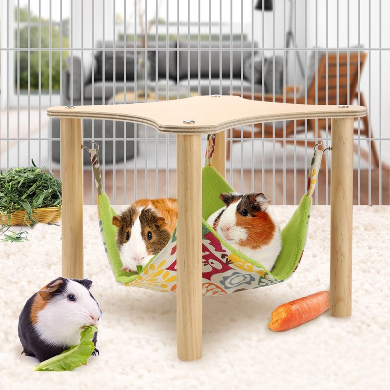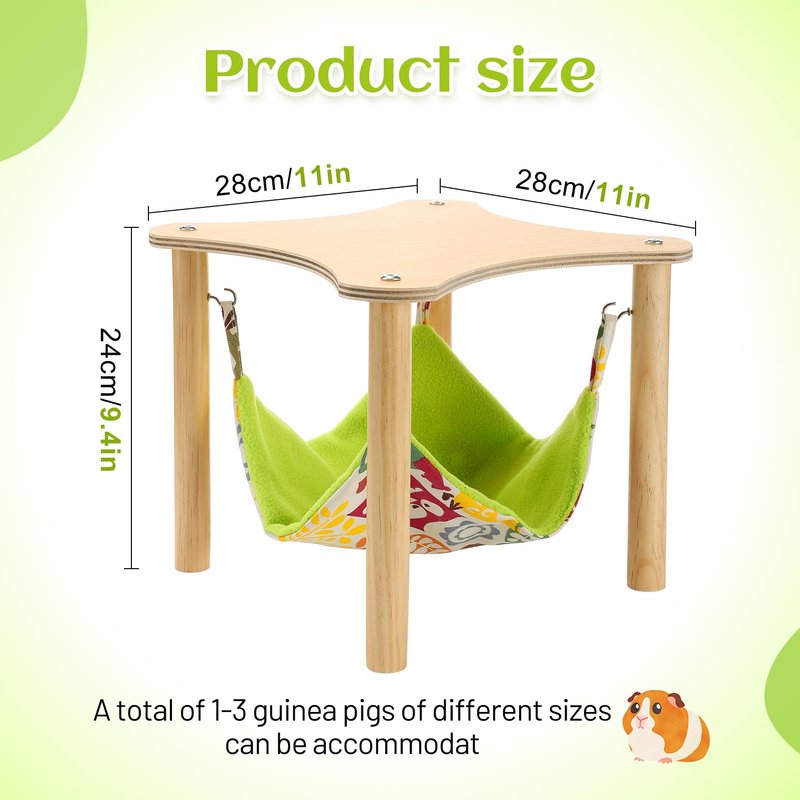 - Multi-application: The wood hammock with stand has an overall size of 11" x 11" x 9.4" and a single hammock can accommodate 1-3 different sized guinea pigs. Also suitable for hamsters, chinchillas, gerbils, rats, ferrets, rabbits, flying squirrels, hedgehogs and more.