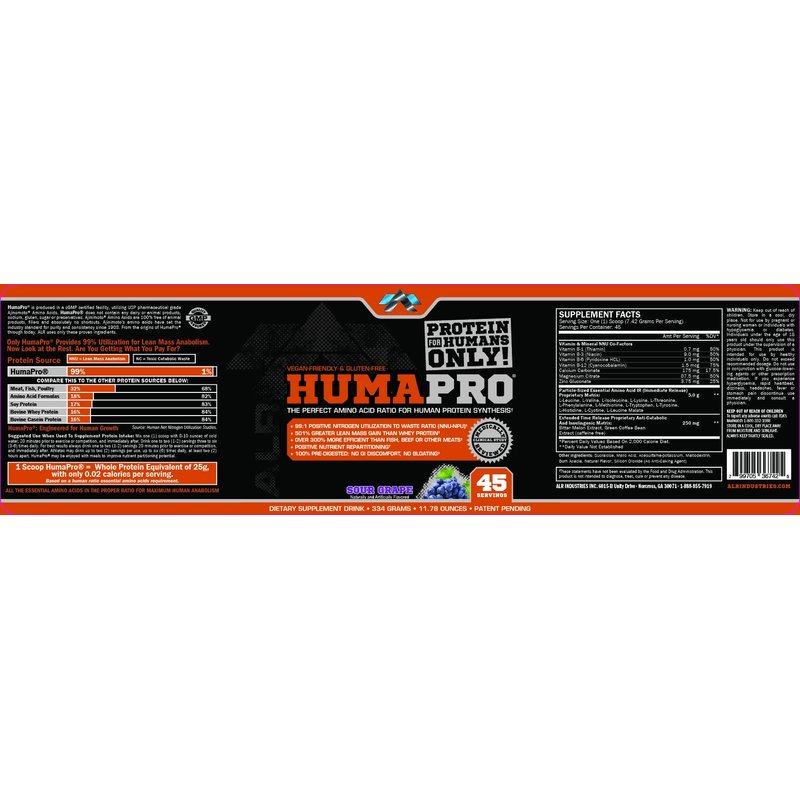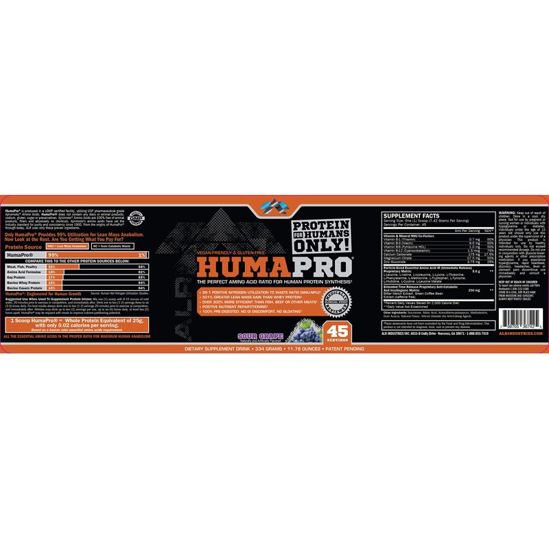 ALR Industries Humapro, Protein Matrix Blend, Formulated for Humans, Amino Acids, Lean Muscle, Vegan Friendly, 334 Grams (Sour Grape)