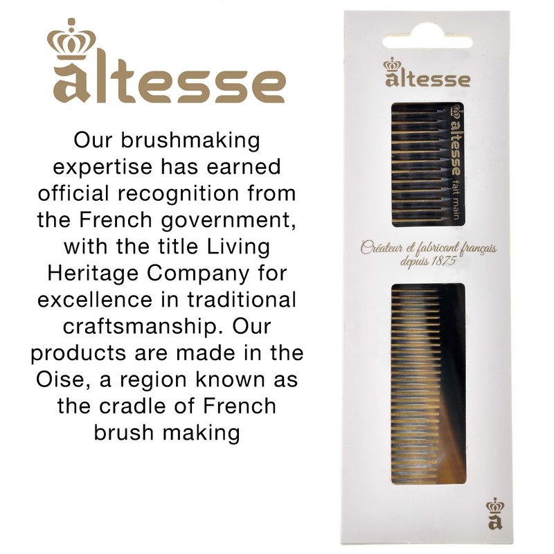 Altesse 11304 Horn Comb Wide Tooth Comb and Fine Tooth Comb with Smooth Rounded Teeth for Thick or Thin Hair Antistatic Dresser Comb Hair Comb for Men and Bone Comb for Women (6.3") Handmade in France