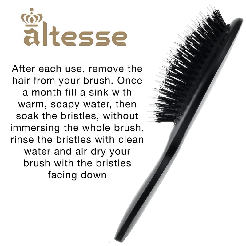 - After each use, remove the hair from your brush. Once a month fill a sink with warm, soapy water, then soak the bristles, without immersing the whole brush, rinse the bristles with clean water and air dry your brush with the bristles facing down