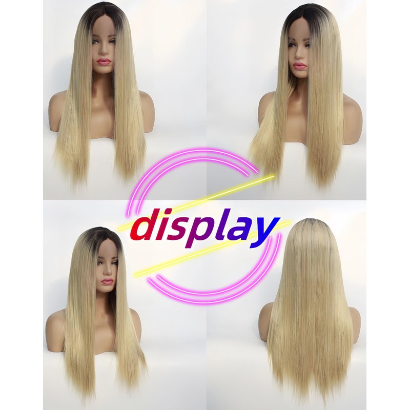 - ❤️30 Inch, Hair Length Same as Picture. Long Straight Wigs, Natural Black Blonde Color, Synthetic Lace Front Wig.