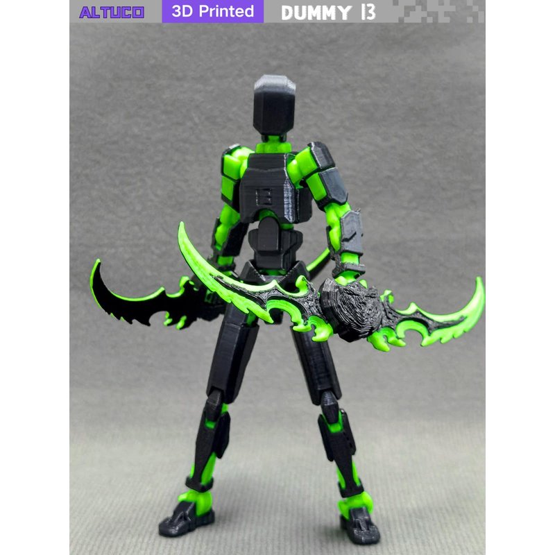 altuco Assembled T13 Action Figure with Multiple Accessories, Black-Green 3D Printed Multi-Jointed Titan 13 Figure,Dummy 13 Desktop Decorative Toy