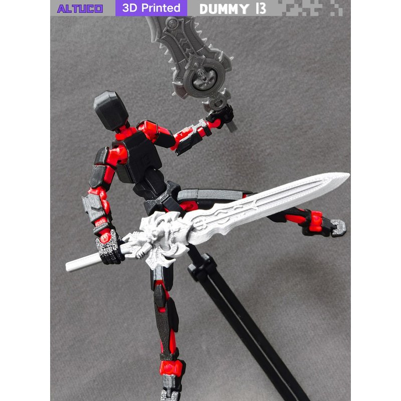 altuco Assembled T13 Action Figure with Multiple Accessories,Black-Red 3D Printed Multi-Jointed Titan 13 Figure,Dummy 13 Desktop Decorative Toy