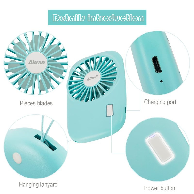 - 【Cooling Artifact】Aluan mini fan is inbuilt with first- new copper made powerful motor, which can support the blade rotate at high speed and produce strong wind, applied fluid-mechanical cover to strength the wind brought out by the blade, you can even feel the wind 1m away from this small fan.