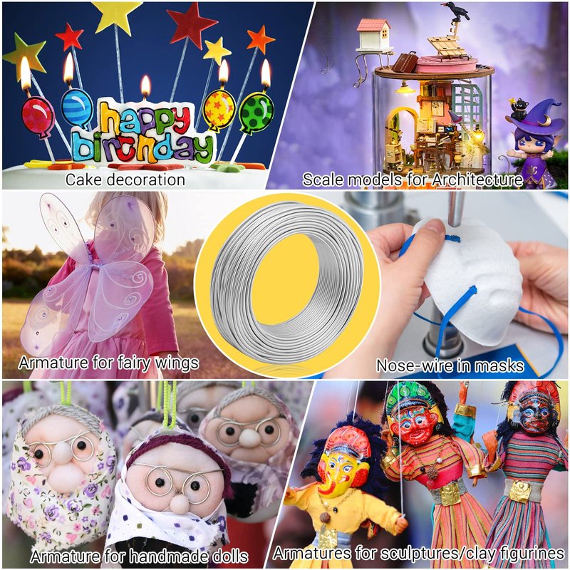 Building armature for dolls, sculptures and clay models, gardening, bonsai trees, jewelry making, wire weaving, gems wrapping, Christmas, Halloween decorations, home decor, party decor and more.