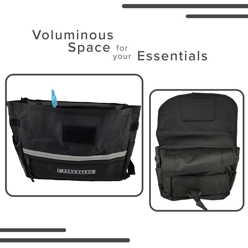 Do you need a better way to store your accessories while using your mobility transport chair, scooter, or power chair? If so, you need to check out our AlveyTech Black Deluxe Saddle Bag! Our saddle bag is the perfect way to store your accessories, thanks to its copious capacity and compatibility with a variety of transportation devices! The bag measures 10" long x 3" deep pouch (front to back) x 7" high, providing you with plenty of space to store the essentials. Plus, it universally, quickly and securely mounts on any transport chair, walker, rollator, mobility or folding electric scooter, power chair, or medical wheelchair arm rest with its extra-strong hook and loop fasteners. Made with durable 420D ripstop fabric, our saddle bag is built to last. It's also softer than the textured vinyl found on some lesser-quality caddy competitors, providing you with superior comfort when carrying your belongings. Add some spares to your cart and order your AlveyTech Black Deluxe Saddle Bag today!