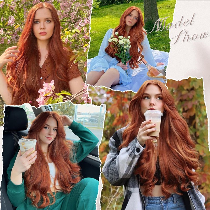 ALXNAN Clip in Hair Extension, 7PCS Hair Extension Thick Long Stright Layered Hair Extensions Copper 20 Inch Invisible Lace Weft Hair Extensions for Women