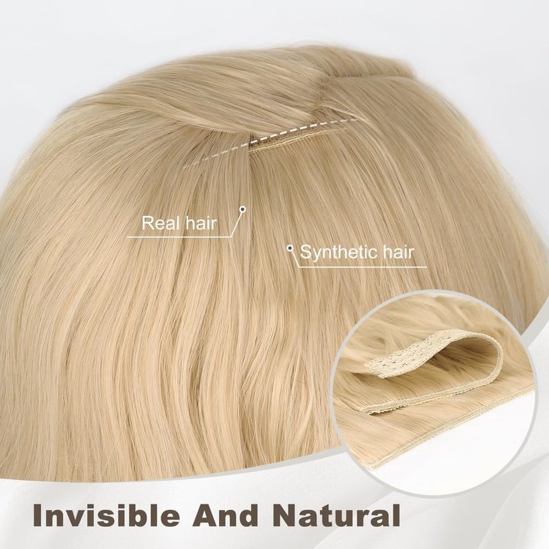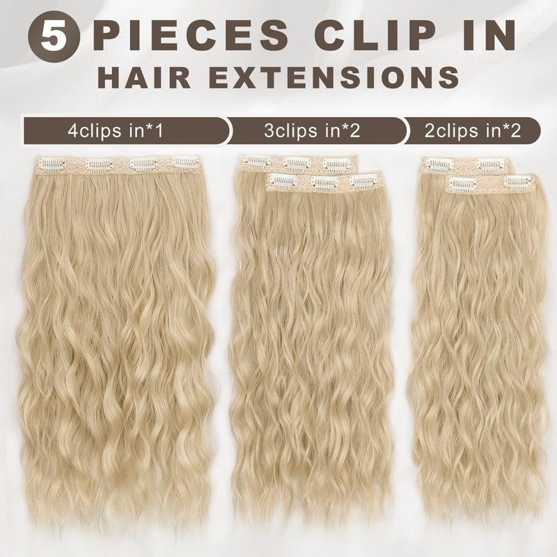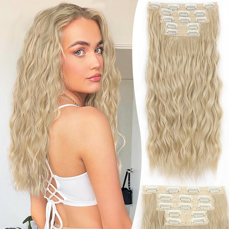 ALXNAN Clip in Hair Extensions, 16" Bleach Blonde Hair Extensions, Thick Long Mermaid Waves Hair Extensions Soft Hairpieces For Women