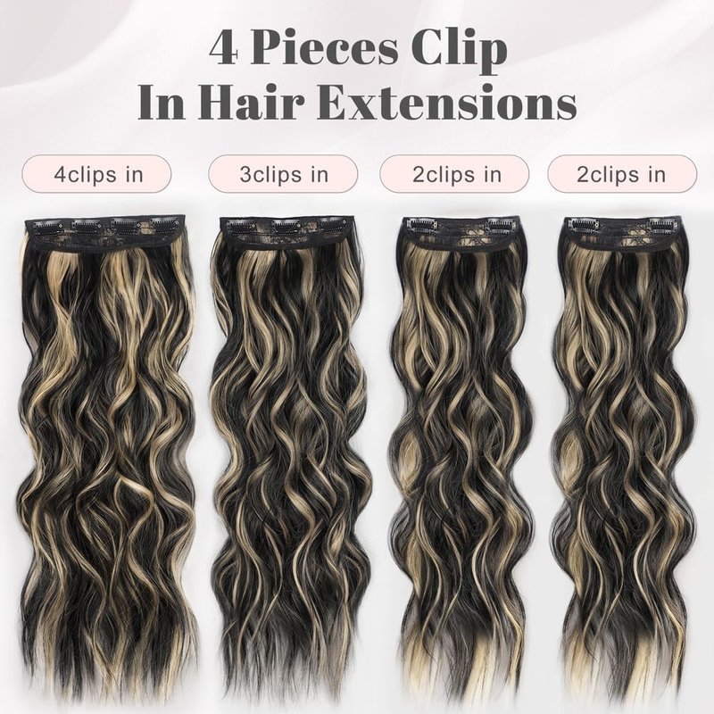 - ❤【Advantages of 4PCS Clip in Extensions】: Compared to traditional hair extensions,No tape,No glue, our hair extension only uses BB clips to fix.You can finish it in minutes.And no pressure, no damage to the scalp. this long hair wavy extension is safer and more comfortable. They can be cut, permed and washed. You don't need to rush to the Salon for a party, or be upset in an overslept morning; just spend 5 minutes wearing these hair