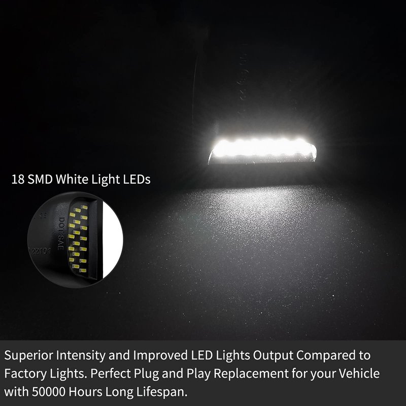- Features: Built-in high power 18 SMD LED chips, 6500k white light, brighter than stock bulbs. With CANBUS control unit, no error code, a best replacement for OEM.
