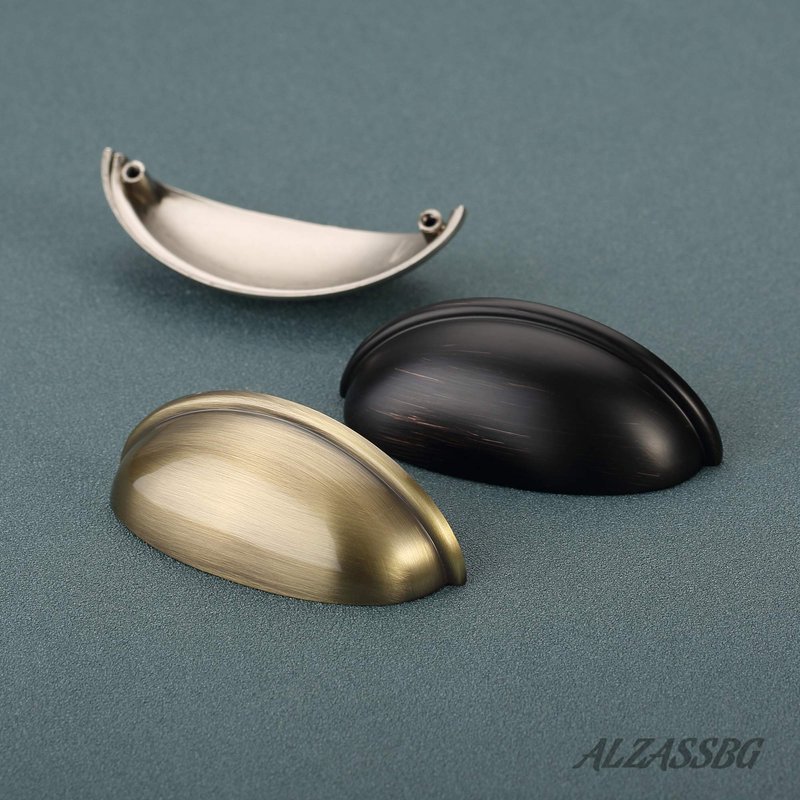 Alzassbg 10 Pack Brushed Antique Brass Cabinet Cup Pulls, 3 Inch(76mm) Hole Centers Cabinet Handles Hardware Bin Cup Drawer Pulls Handles AL3031AB