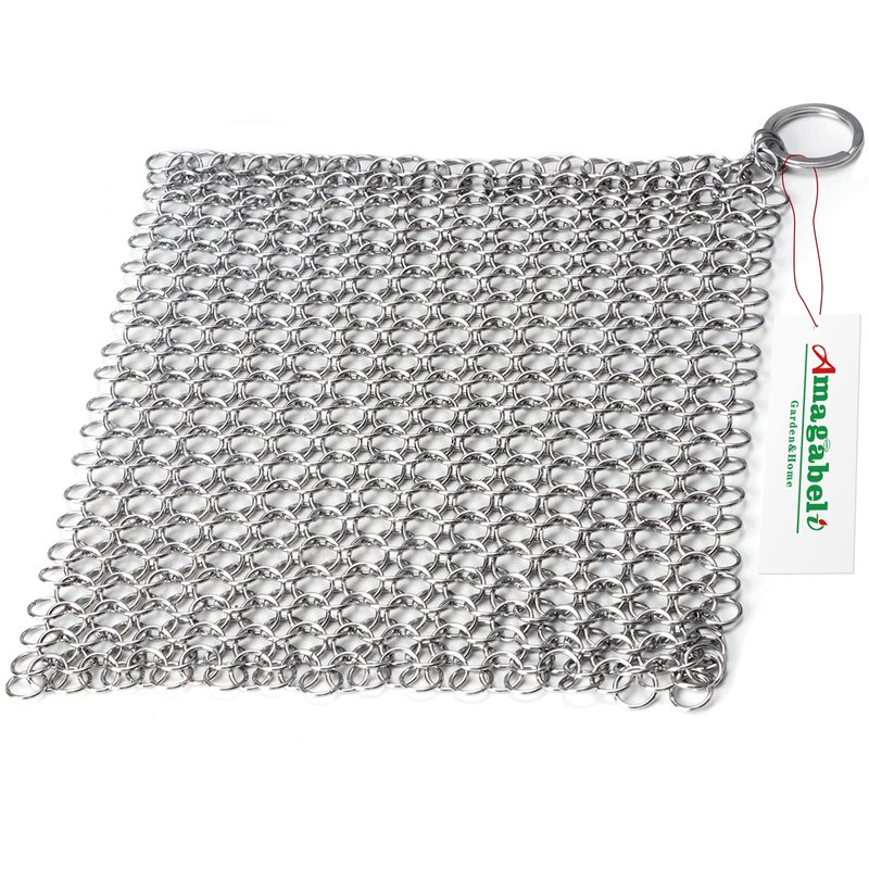 Amagabeli Cast Iron Cleaner 8"x6" Rectangle Chain Metal Scrubber with Hanging Ring 316 Premium Stainless Steel Chainmail Scrubber for Skillet,Wok,Pot,Pan CS03