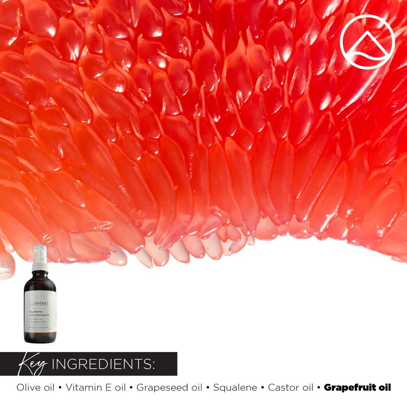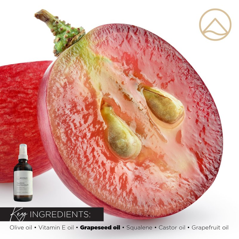- INSPIRED BY NATURE: Effectively remove everything from dirt, oil, to waterproof makeup the all-natural way with the Amaki 100% organic facial cleansing oil. It contains a wholesome blend of organic grapeseed oil, organic olive oil, organic castor oil, grapefruit essential oil blend, squalane, and vitamin E.