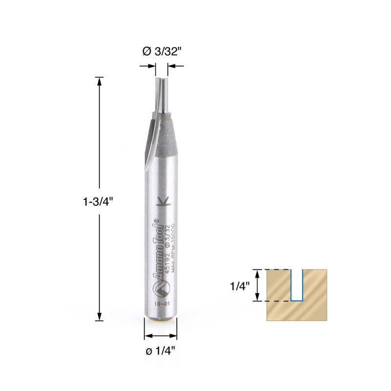Amana Tool - 45192 Solid Carbide Cutting Edge Straight Plunge CNC Router Bit for Wood High Production 3/32 Dia x 1/4 x 1/4 Inch Shank